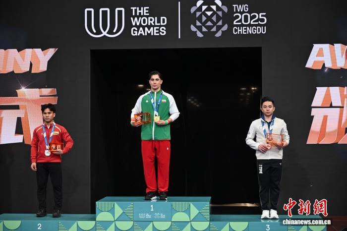 鼓聲如雷,棍影疾閃。8日晚的成都世運會男子南拳-南棍決賽現(xiàn)場,伊朗選手沙欣·巴尼塔萊比如同一陣風,在場上疾進、騰躍、急停,南棍在他手中化作閃電般的弧線,直擊觀眾心弦。每一次翻身劈棍,每一次凌空收勢,現(xiàn)場總是掌聲雷鳴。