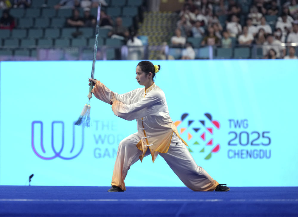 8月8日,成都高新區體育中心綜合館內,隨著太極劍最后一道銀光劃破空氣,中國選手盧卓靈以19.522分將女子太極拳-太極劍金牌收入囊中。這不僅是本屆世運會中國代表團的首金,更是中國傳統武術文化向世界遞交的又一張閃亮名片。