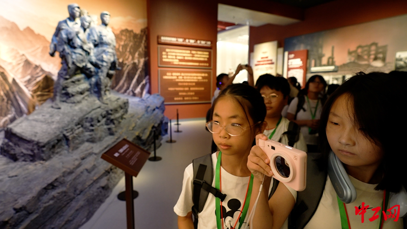 圖為小營員們駐足觀看8098張歷史照片組成的展墻。中工網記者 趙海山 攝
