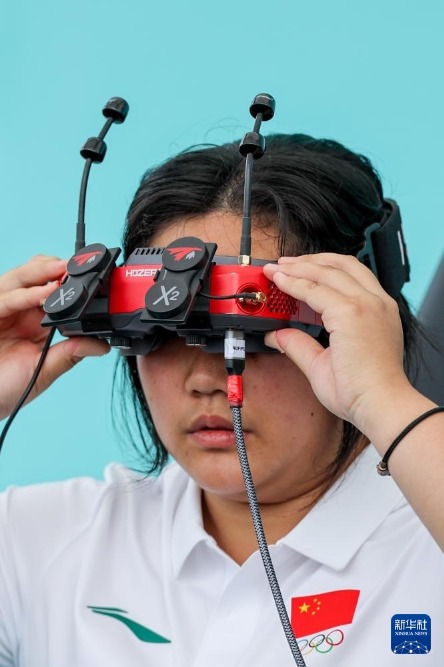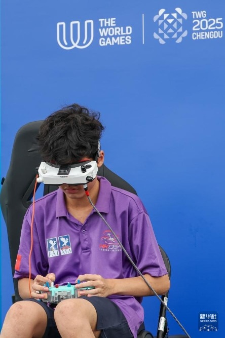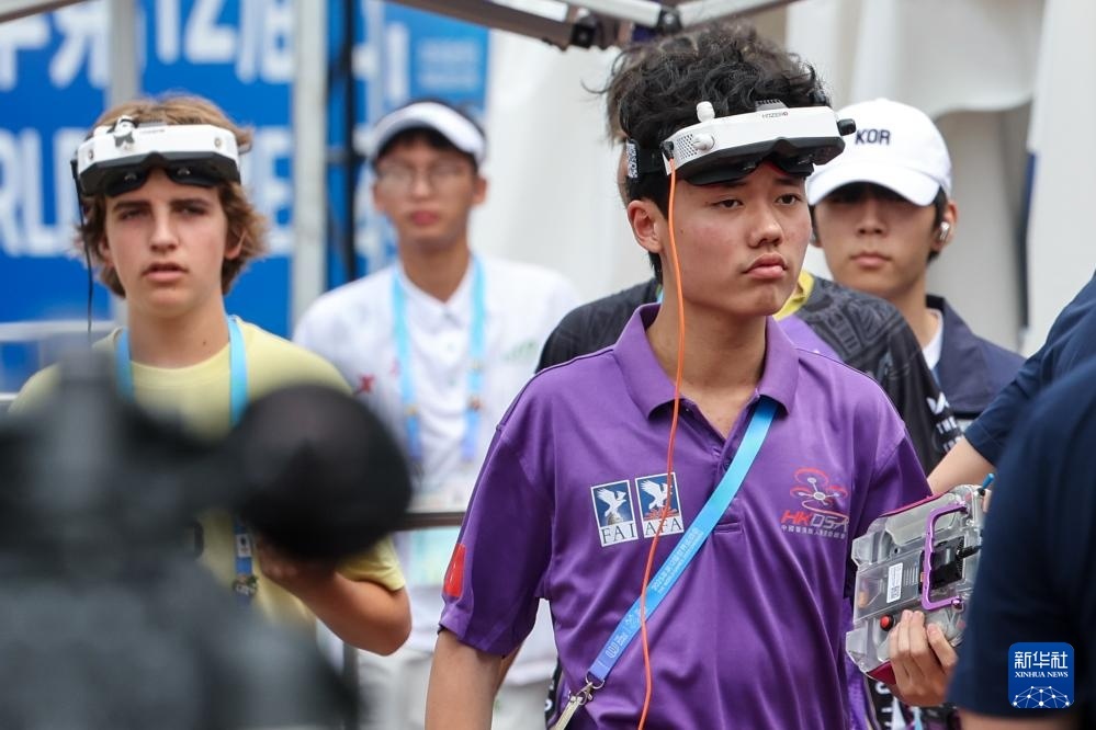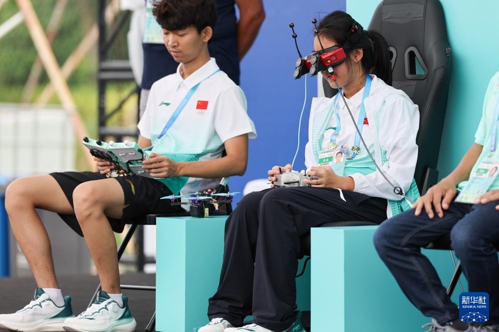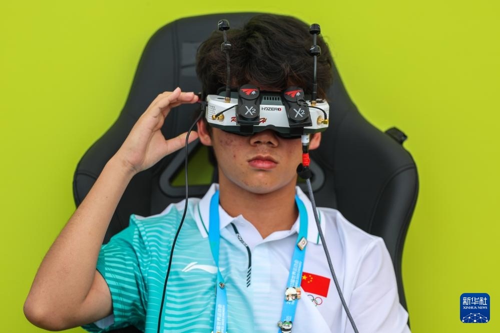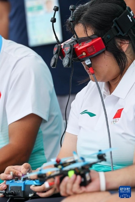 8月14日,中國(guó)選手黃悅祺在無人機(jī)競(jìng)速資格賽第二輪比賽前進(jìn)行準(zhǔn)備。新華社記者 李博 攝