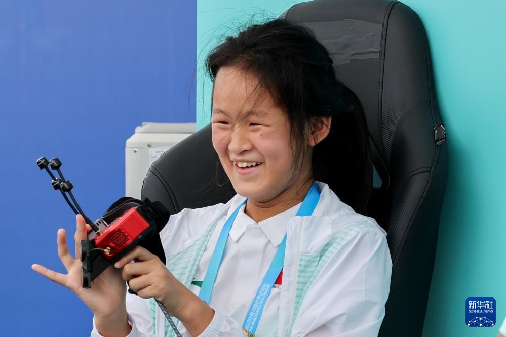 8月14日,中國(guó)選手何雨瞳在無人機(jī)競(jìng)速資格賽第二輪比賽前進(jìn)行準(zhǔn)備。新華社記者 李博 攝