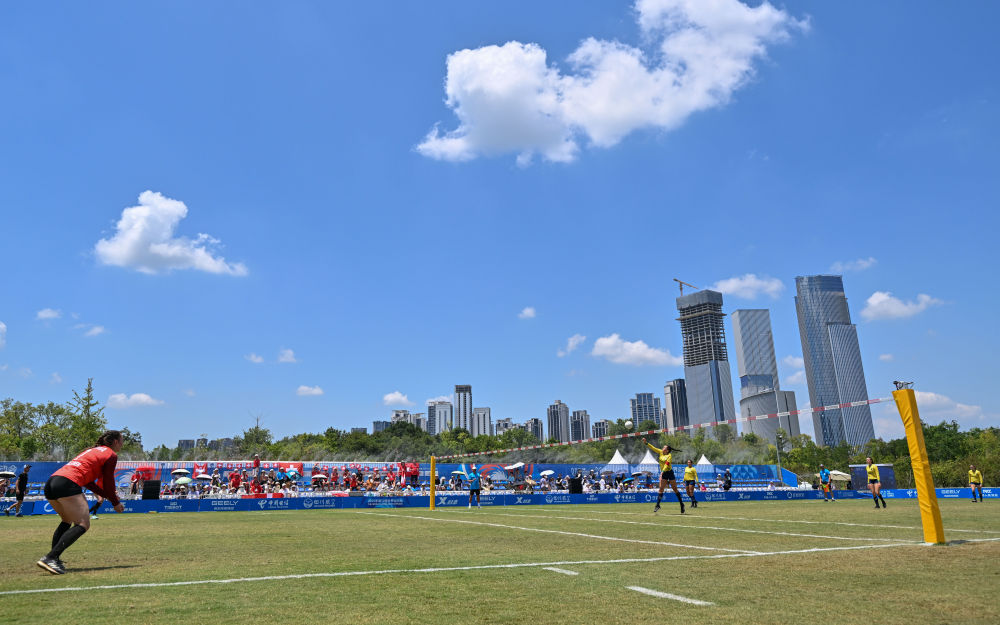 8月12日,巴西隊與奧地利隊在2025年成都世運會浮士德球女子半決賽比賽中。新華社記者 陳誠 攝