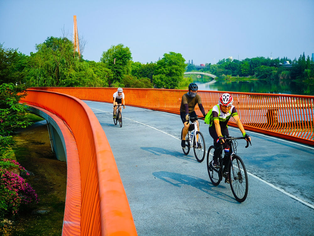 人們在成都錦城湖公園綠道上騎行(2023年攝)。新華社記者 沈伯韓 攝