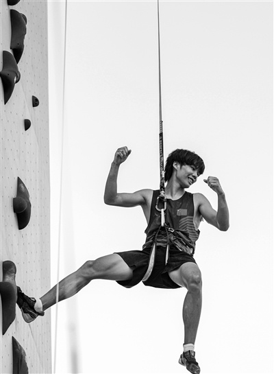 成都世運會上攀巖項目中國隊不斷刷新紀錄,斬獲傲人戰績,中國攀巖隊讓所有人見識了“中國速度”。中國攀巖隊教練鐘齊鑫說,也許你并非是專業的攀巖者,但在面對生活的挑戰、面對健康的追求時,每一個人都有一座屬于自己的巖壁,每一次的堅持、每一點的進步都是向上攀登,讓我們無數次從失敗中站起來,讓每一寸肌肉都充滿著健康的力量。