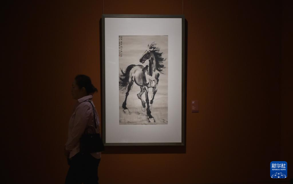 這是8月25日在中國美術館拍攝的徐悲鴻創作的《戰馬》。新華社記者 魯鵬 攝