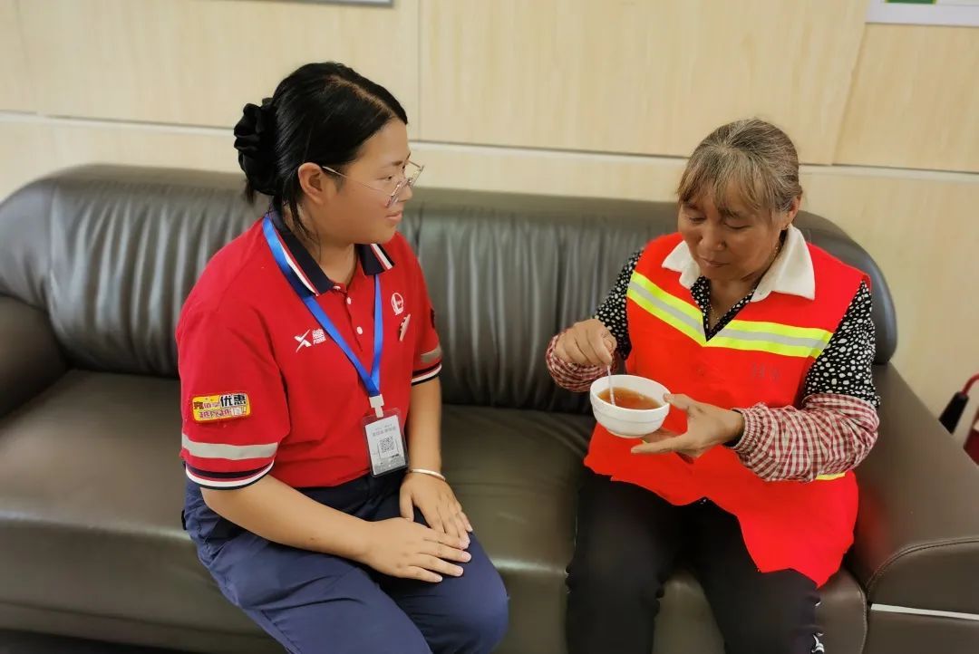 為其遞上“工會驛站”提前備好的藿香正氣水