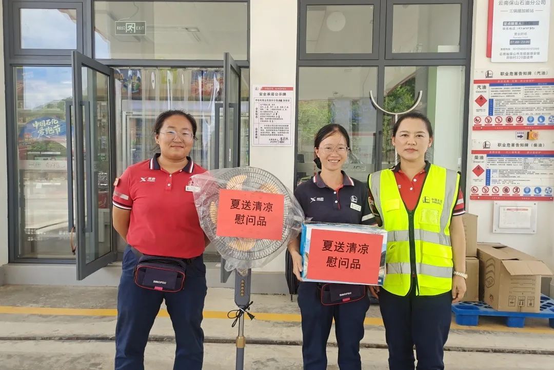 昭通石油、玉溪石油、保山石油、普洱石油結合各加能站區域氣候及地理位置差異,科學制定慰問方案,工會小組為一線員工配備包含驅蚊花露水、電風扇、防暑藥品及應季水果等物資的防暑降溫包,為堅守一線的員工送上一份清涼關懷。