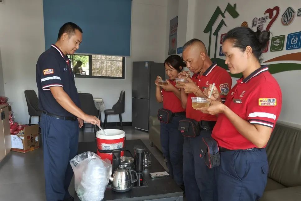 紅河石油、保山石油工會小組帶頭組織站經理利用休息時間動手熬煮綠豆湯,并貼心遞到員工手中。這一份份清涼不僅驅散了高溫工作帶來的燥熱,更讓員工在忙碌間隙,真切感受到“家”一般的溫暖與愜意。