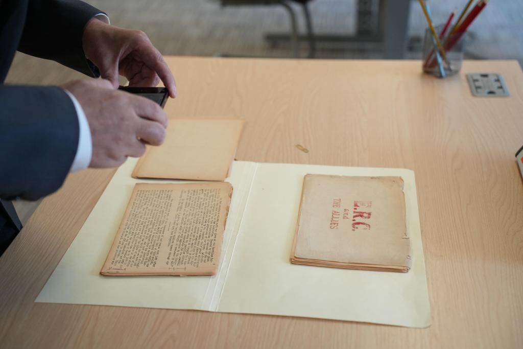 這是8月21日在位于英國曼徹斯特市的人民歷史博物館拍攝的由曾參加東江縱隊的新華社倫敦分社首任社長黃作梅主筆編撰的東江縱隊援救盟軍人員的檔案資料。新華社記者 吳黎明 攝