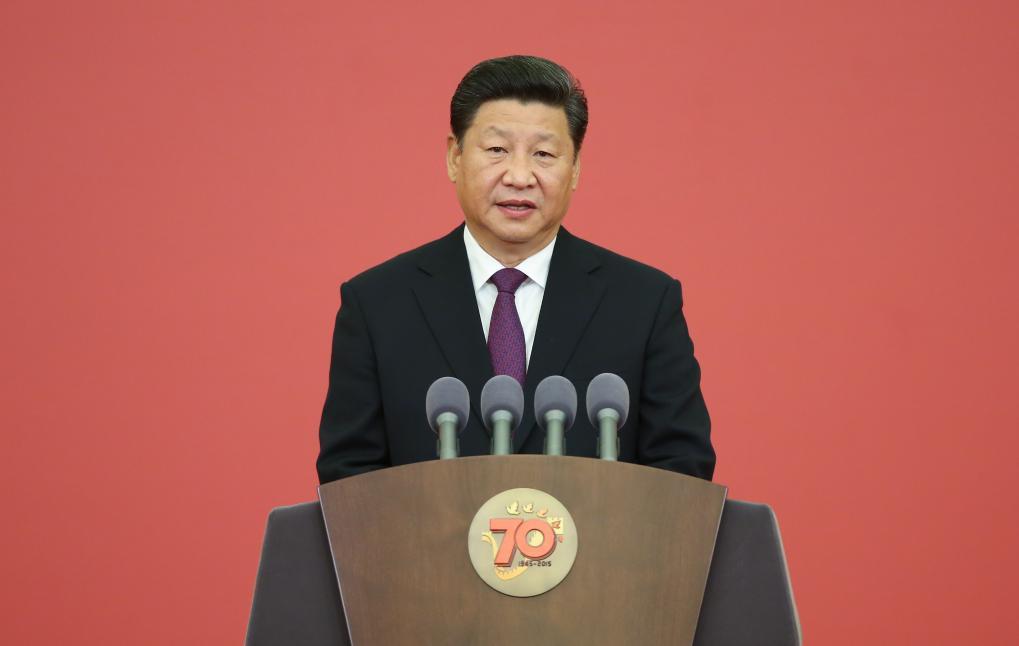 2015年9月,中國人民抗日戰爭勝利70周年紀念章頒發儀式在北京人民大會堂隆重舉行。習近平總書記發表重要講話。新華社記者 龐興雷 攝