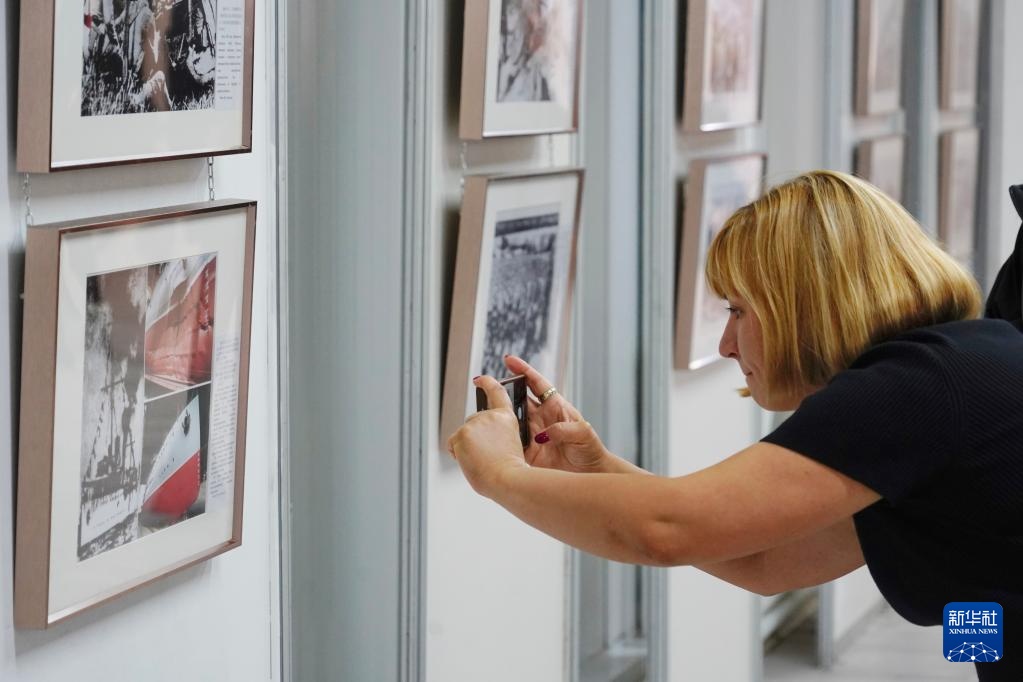 8月28日,在俄羅斯圣彼得堡,一名女子參觀紀(jì)念中國(guó)人民抗日戰(zhàn)爭(zhēng)暨世界反法西斯戰(zhàn)爭(zhēng)勝利80周年圖片展。新華社記者 周天翮 攝