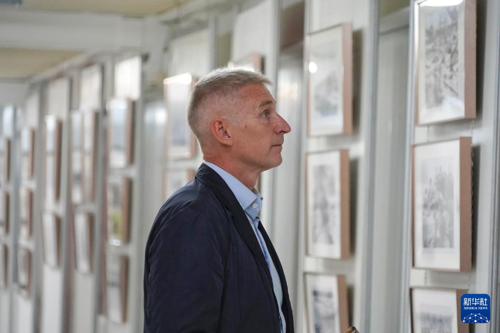8月28日,在俄羅斯圣彼得堡,一名男子參觀紀(jì)念中國(guó)人民抗日戰(zhàn)爭(zhēng)暨世界反法西斯戰(zhàn)爭(zhēng)勝利80周年圖片展。新華社記者 周天翮 攝