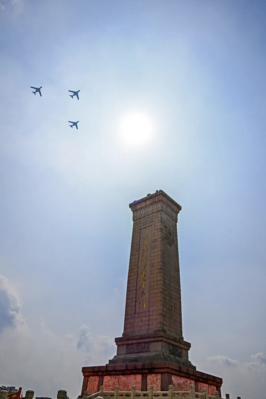 9月3日,紀念中國人民抗日戰爭暨世界反法西斯戰爭勝利80周年大會在北京隆重舉行。這是轟炸機梯隊通過天安門廣場。新華社記者 劉穎 攝