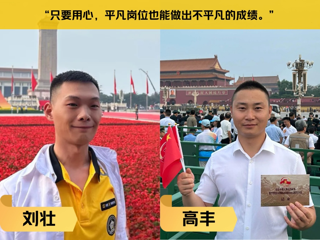 得知魏團結受邀參加了九三閱兵觀禮,一位王姓老客戶特意打來電話,語氣里滿是欣慰:“小魏,你能去現場看閱兵太了不起了!記得發點現場視頻和照片,讓我們也感受下那振奮人心的氛圍!”臧繼全把觀禮時拍下的照片、視頻分享到客戶群,很快收獲了大家的點贊,“早就聽說你幫著農戶賣農產品,原來平凡崗位只要好好干,也能出彩、被看見!”閆賀第一時間給家人分享了現場照片,閆賀的爸爸語氣滿是驕傲:“我兒子能站在那兒觀禮,我這心里比啥都高興!多虧公司和他們簽署正式勞動合同、繳納五險一金,讓他們能踏踏實實工作,才有機會站上這么光榮的舞臺!”