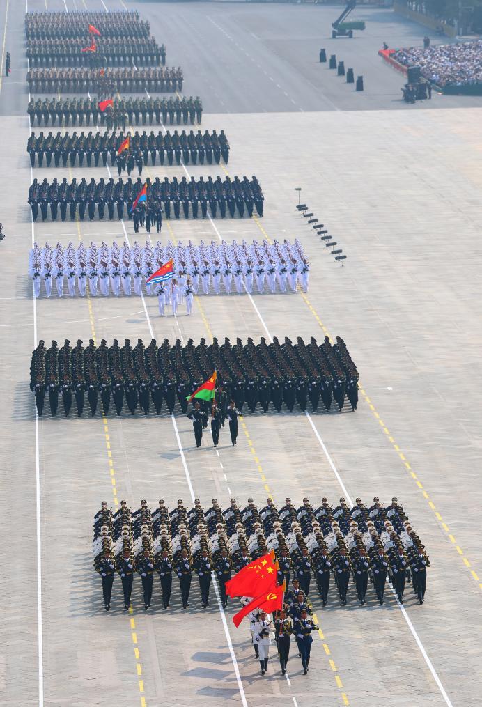 9月3日,紀念中國人民抗日戰爭暨世界反法西斯戰爭勝利80周年大會在北京隆重舉行。這是徒步方隊接受檢閱。新華社記者 劉續 攝