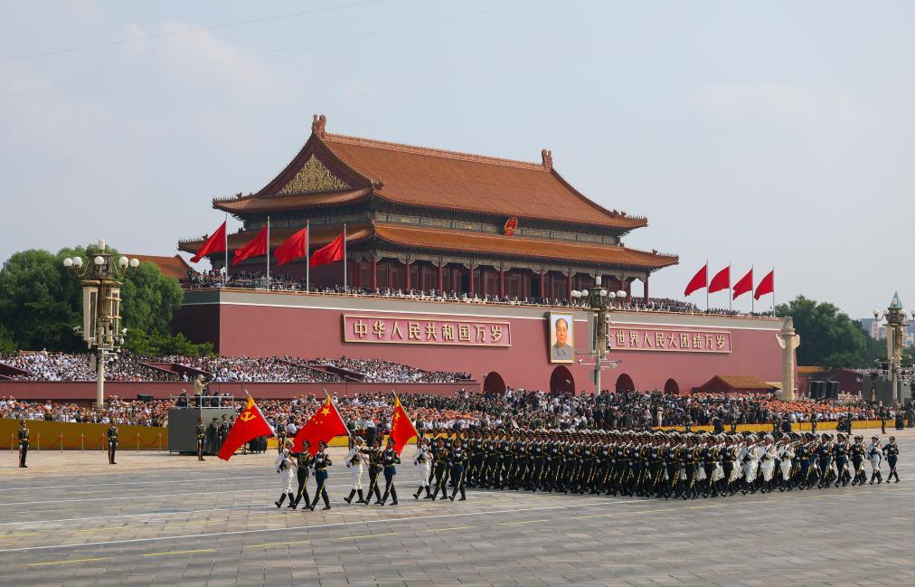9月3日,紀念中國人民抗日戰(zhàn)爭暨世界反法西斯戰(zhàn)爭勝利80周年大會在北京隆重舉行。這是國旗護衛(wèi)隊在行進中。新華社記者 魏培全 攝