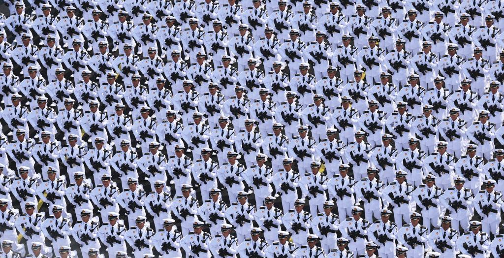 9月3日,紀念中國人民抗日戰(zhàn)爭暨世界反法西斯戰(zhàn)爭勝利80周年大會在北京隆重舉行。這是海軍方隊接受檢閱。新華社記者 王鵬 攝