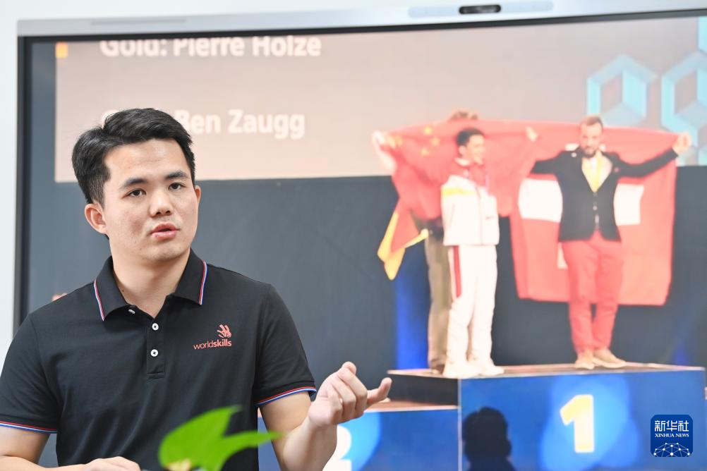 9月9日,伍遠(yuǎn)州在學(xué)校給來訪人員介紹比賽經(jīng)驗(yàn)。新華社記者 李然 攝