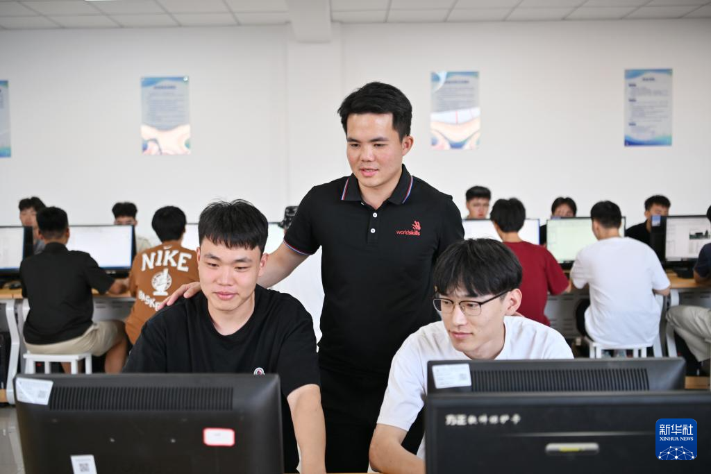 9月9日,伍遠(yuǎn)州在CAD繪圖課堂上指導(dǎo)學(xué)生操作。新華社記者 李然 攝