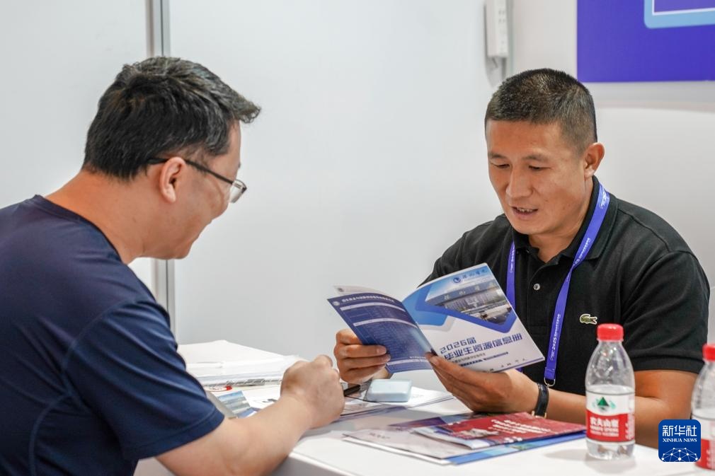 9月15日,在云南昆明舉行的2025年國家網絡安全宣傳周配套活動——網絡安全和信息化人才招聘會上,用人單位代表和求職者洽談。新華社記者 彭奕凱 攝