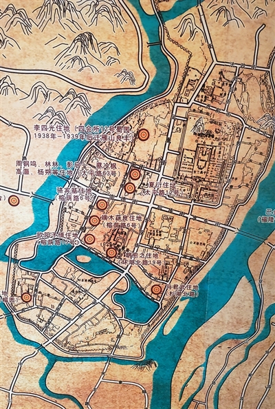 抗戰時期部分文化名人在桂林居住分布圖。人民日報海外版記者 鄭娜 攝