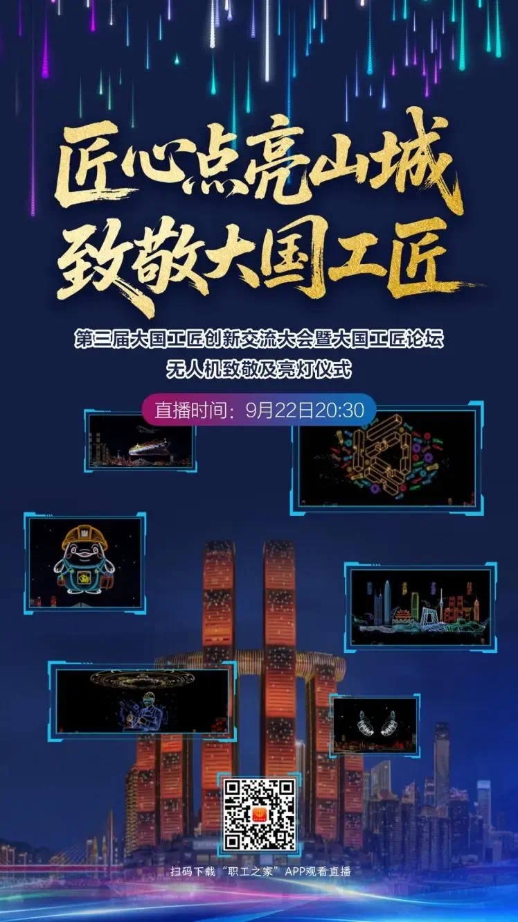 作為本屆大會的亮點(diǎn)活動,第三屆大國工匠創(chuàng)新交流大會暨大國工匠論壇無人機(jī)致敬及亮燈儀式將于9月22日晚8點(diǎn)30分準(zhǔn)時開啟,以科技與藝術(shù)相結(jié)合的方式向大國工匠致敬。