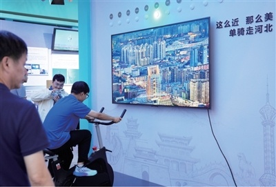 9月23日,河北展區(qū)內(nèi)的“虛擬騎行環(huán)河北”互動(dòng)區(qū)吸引眾多嘉賓體驗(yàn)打卡。