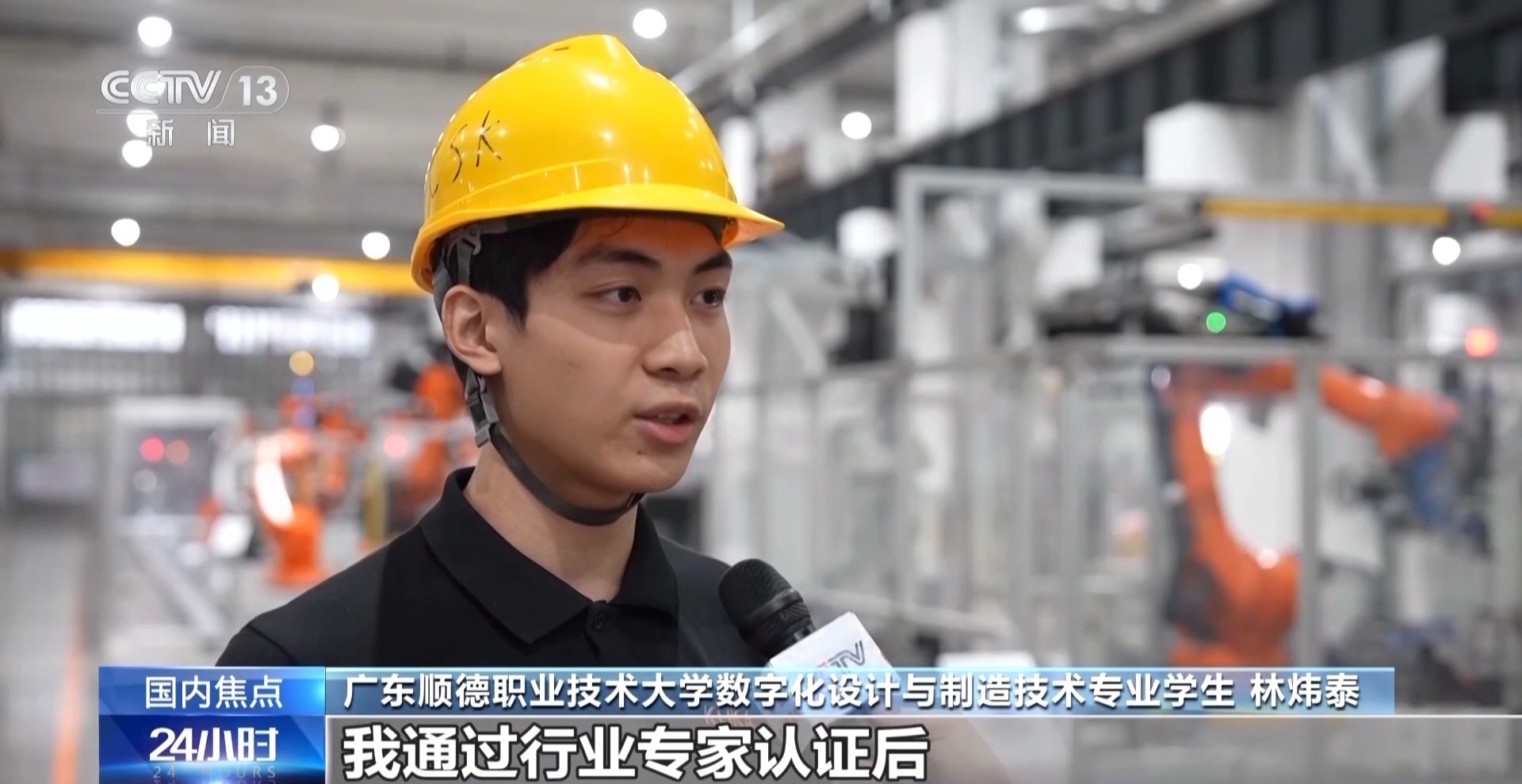 廣東順德職業技術大學數字化設計與制造技術專業學生 林煒泰:學習效率很高,我通過行業專家認證后,就直接來到公司這個產線機器人編程崗進行實習,我現在每個月的實習工資是4000元左右。