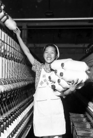 趙夢桃是原西北國棉一廠細(xì)紗擋車工,連續(xù)42次被評(píng)為各級(jí)先進(jìn)生產(chǎn)者,兩次被授予全國勞動(dòng)模范稱號(hào),還被選為黨的八大代表,是全國紡織戰(zhàn)線的一面旗幟。