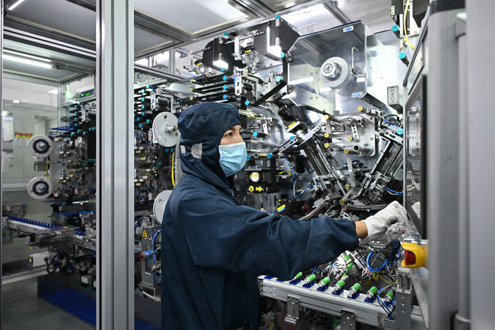 在山西陽泉,華陽新材料科技集團華鈉芯能科技有限責任公司的工作人員在操控設備(2024年7月31日攝)。新華社記者 李鑫 攝