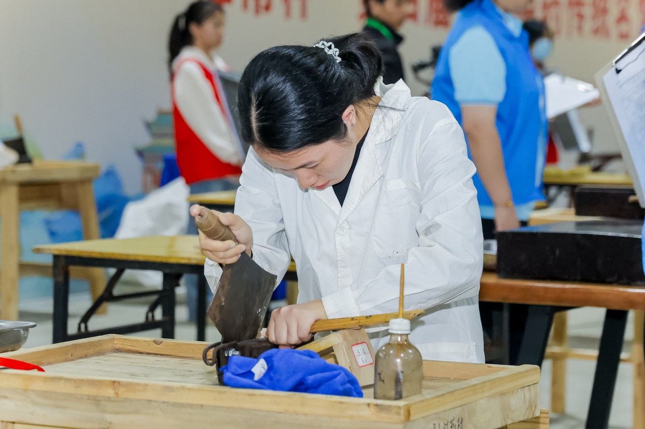 決賽中,選手們不僅展現(xiàn)了扎實的實操技能,更將“遵古不泥古、創(chuàng)新不失宗”的傳承理念融入比賽,泛丸制作、蜜丸制作、中藥切制等傳統(tǒng)制作技藝在競技中煥發(fā)出新的生命力,有參賽選手創(chuàng)造了6分鐘切制白芍582片的競賽最好成績。