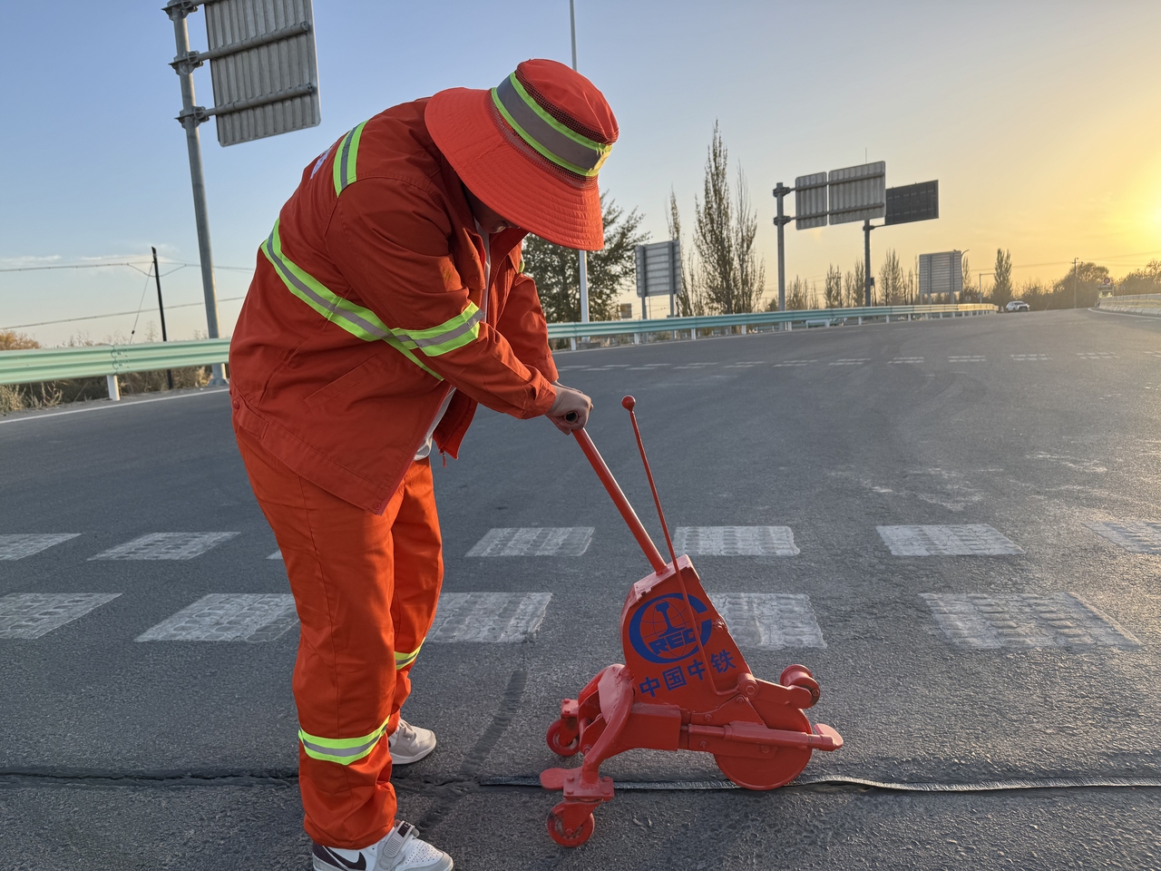 近日,中鐵六局新疆區域項目部自主研發的創新型公路手持貼縫工具在新疆若民高速公路成功投入使用。這款工具宛如“公路裁縫”,能夠精準修復公路產生的裂縫,達成了高速公路貼縫飽滿、線條美觀、路面整潔等多項目標,有力推動了高速公路養護作業朝著智能化、精細化方向加速轉型升級。