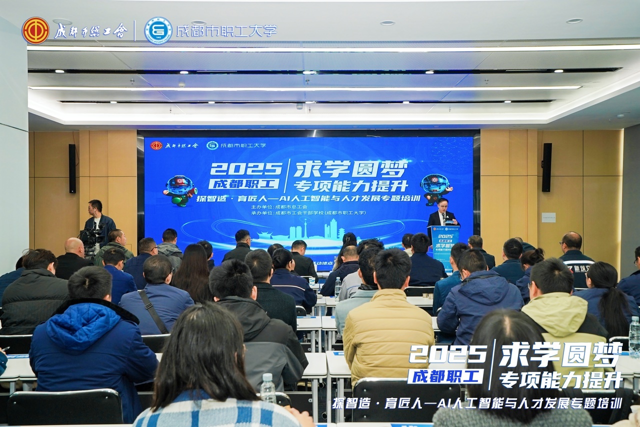 培訓還設置了多元的交流研討環節,大家分別從院校培養、技術趨勢、企業需求和工會支持等多維度,圍繞“AI與人才發展”進行了深度對話,為學員們呈現了一幅全方位的成長圖譜。據悉,本次培訓標志著2025年度成都職工“求學圓夢”專項能力提升系列活動全面啟動,接下來該校將持續整合優質資源,優化服務供給,為廣大職工學員搭建更多元、更精準、更高效的學習平臺,助力大家在學習中成長、在奮斗中出彩。(工人日報客戶端記者 李娜)
