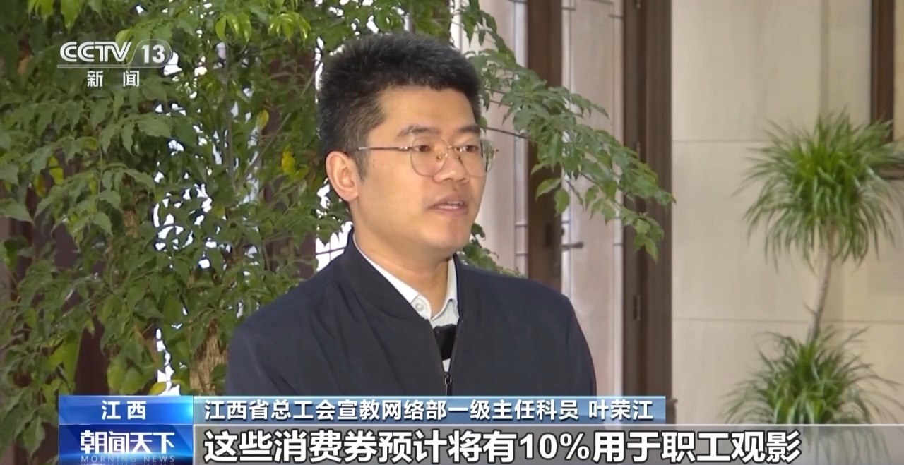 江西省總工會宣教網絡部一級主任科員 葉榮江:這些消費券預計將有10%用于職工觀影,不僅可以豐富職工業余文化生活,也能助力電影市場繁榮發展。