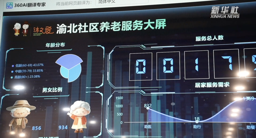 渝北社區老年人人數在1800人左右。這塊智慧大屏記錄了渝北社區老年人的基礎數據,讓社區養老基礎信息、長者養老服務需求一目了然。