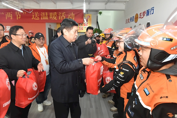 中工網(wǎng)訊 12月19日上午,山西省人大常委會副主任、省總工會主席王純帶隊開展“兩節(jié)”送溫暖活動,先后赴太原市政集團建設(shè)有限公司、太原市外賣配送行業(yè)工會聯(lián)合會千禧·錦繡苑騎手安全健康服務(wù)站,慰問困難企業(yè)、困難職工和勞模代表,送上慰問金和慰問品,并同步開展新就業(yè)形態(tài)勞動者大慰問大走訪工作,與外賣配送行業(yè)的新就業(yè)形態(tài)勞動者座談交流,傳遞黨和政府及工會組織的關(guān)懷與溫暖。