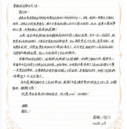“工會的幫扶,讓普通勞動者在維權路上不再孤單;工會的擔當,為我們弱勢群體撐起了一片法治藍天!”手寫信中,該位女職工如是真誠致謝。