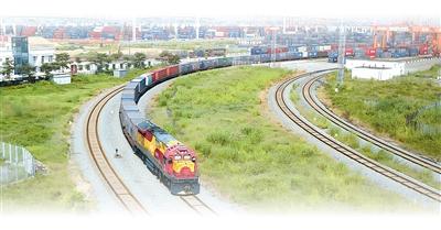 滿載集裝箱的班列駛離廣西欽州鐵路集裝箱中心站。新華社記者 張愛林?jǐn)z