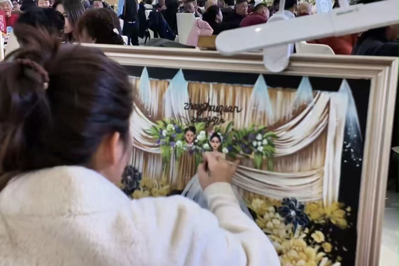 “把作品交付給新人時,看到他們滿意的神情,我就深刻感受到了這份職業的價值與意義。”徐芙蓉說,未來她會嘗試更多不同的繪畫風格,為每一對新人打造更具個性化的驚喜。(工人日報客戶端記者 王偉偉 董魯豫)