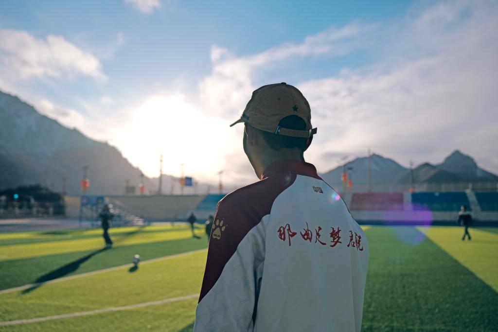 頓珠嘉措害羞少語,談起足球卻滔滔不絕。小學二年級時,在哥哥久美次城的影響下,他開始踢足球。到小學五年級時,頓珠嘉措已成了縣里野球場的常客。即使在冬日零度的天氣里,他也只穿一件單衣在球場上奔跑。黝黑的臉龐在陽光下顯得格外堅毅,瘦小的身軀仿佛蘊藏著巨大的能量。