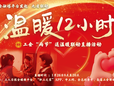 直播回顧|“溫暖12小時”——工會“兩節”送溫暖聯動直播活動???????臘八暖直播,工會伴你過。1月26日,農歷臘月初八,全國工會融媒平臺策劃推出的“溫暖12小時”——工會“兩節”送溫暖聯動直播活動火熱開啟。??9省市聯動,誠邀堅守崗位的一線職工、新就業形態勞動者、勞模工匠等廣大職工群眾共赴一場溫暖之旅:從哈爾濱松花江畔的濃濃粥香到春節文化發源地之一閬中剪福字寫春聯,從“有福之州”福州養出冬日元氣、玩轉趣味活動到“綠城”南寧非遺之美指尖翻飛,從中國職工之家24小時智能化工會驛站美味飯菜暖身心到烏魯木齊社火表演傳承文化魅力、臘八歌謠唱響冬日溫情,從江城蕪湖10萬份臘八粥致敬戶外勞動者到北京朝陽工人文化宮里粥香餃暖,從廣州的臘八粥暖勞動者,穗歲平安迎新年到“甬愛之城”寧波推出馬年文藝盛宴,讓城市運轉的核心力量卸下忙碌、綻放光彩。1月26日上午8時起,全國工會融媒平臺發起持續12小時的直播活動,在北京設置主直播間,與您一起感受這份寒冬里的暖心、暖情、暖意,帶您直擊送溫暖行動現場,聆聽藏在關懷里的動人故事。工會送溫暖開展了30余年,努力把黨的關心關懷、工會組織的溫暖送到職工群眾心坎上。今年有哪些新亮點?一起來看!中工網首頁、微博、抖音號、視頻號同步播出。