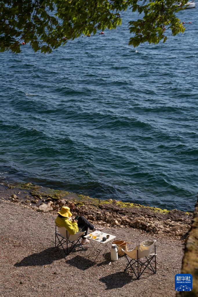 1月27日,游客在云南省玉溪市撫仙湖畔休閑。新華社記者 高詠薇 攝