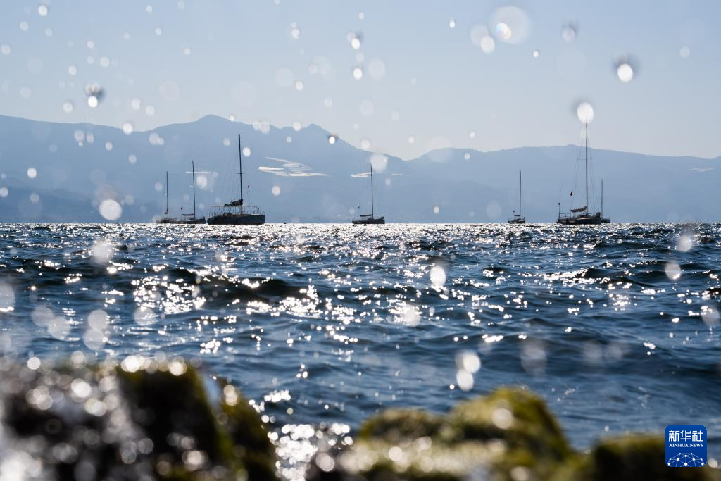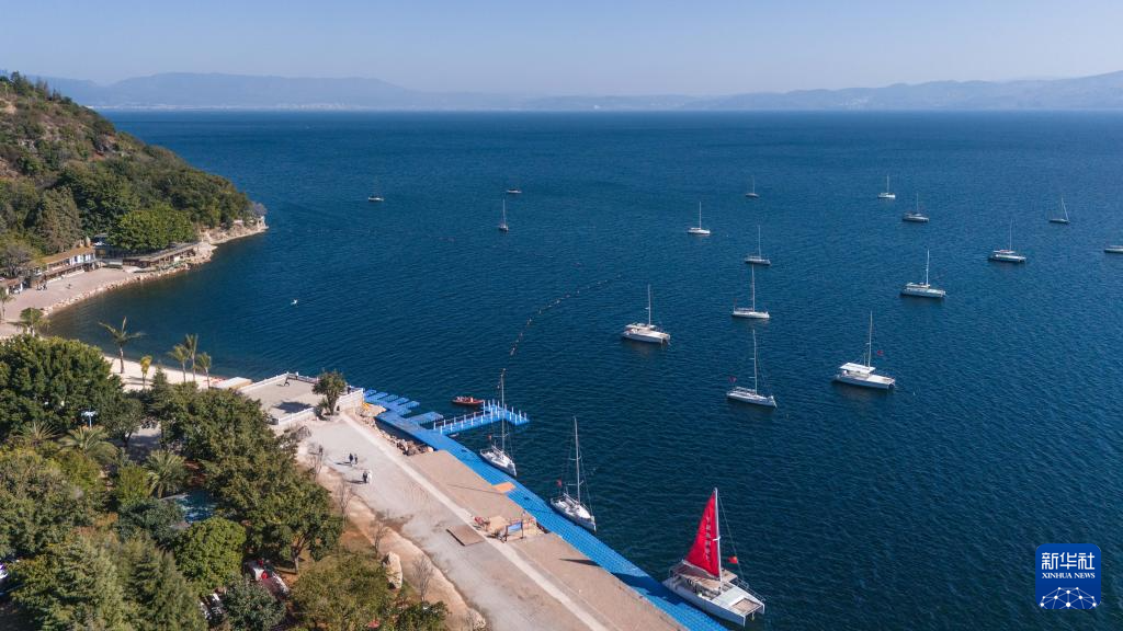 1月27日,游客在云南省玉溪市撫仙湖畔游玩。新華社記者 高詠薇 攝