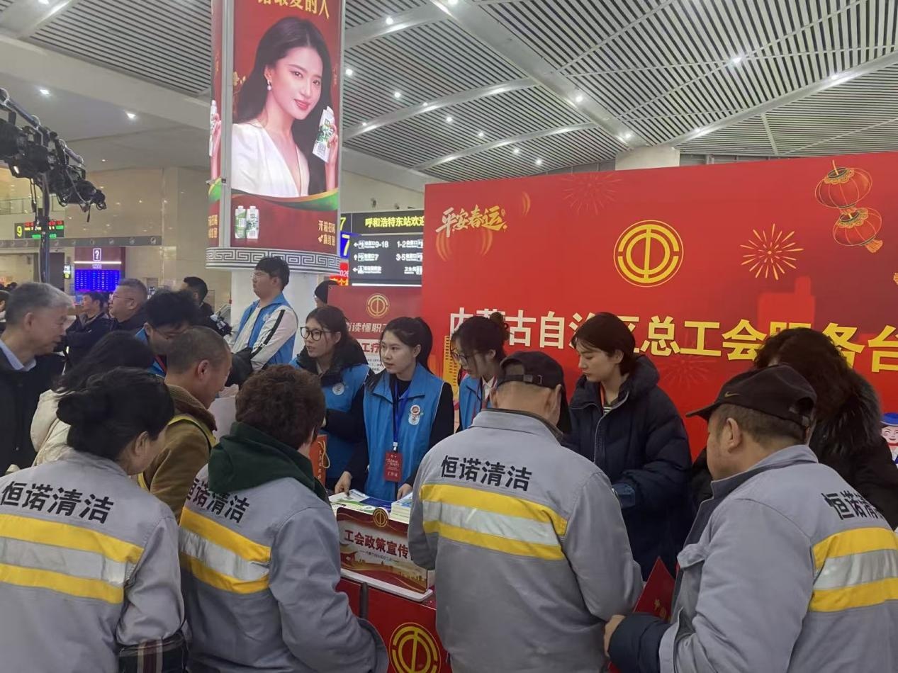 1月30日,內蒙古自治區總工會在呼和浩特東站舉辦“工會維權服務提升建設工程”系列活動。這是內蒙古自治區總工會工作創新與服務下沉的一次具體實踐,聚焦春運期間返鄉旅客最集中、最需要關懷的節點,主動送上“零距離、一站式”的維權咨詢與暖心服務,助力廣大旅客平安返鄉、安心過節。
