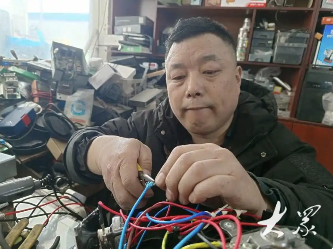 宋金波正在維修電器。