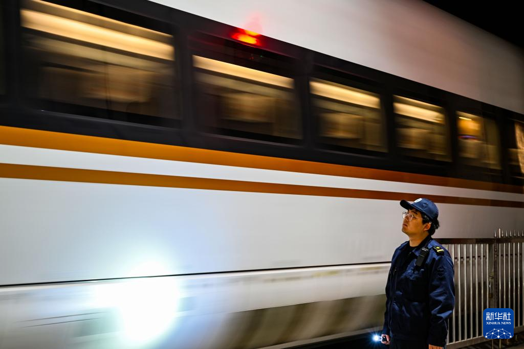 2月2日,在天津動車運用所檢修庫內(nèi),李奇?zhèn)z查正在出庫的一組列車。新華社記者 趙子碩 攝