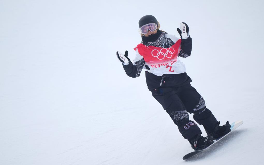 2022年2月10日,美國選手克洛伊·金在北京冬奧會單板滑雪女子U型場地技巧奪冠后。新華社記者 彭子洋 攝