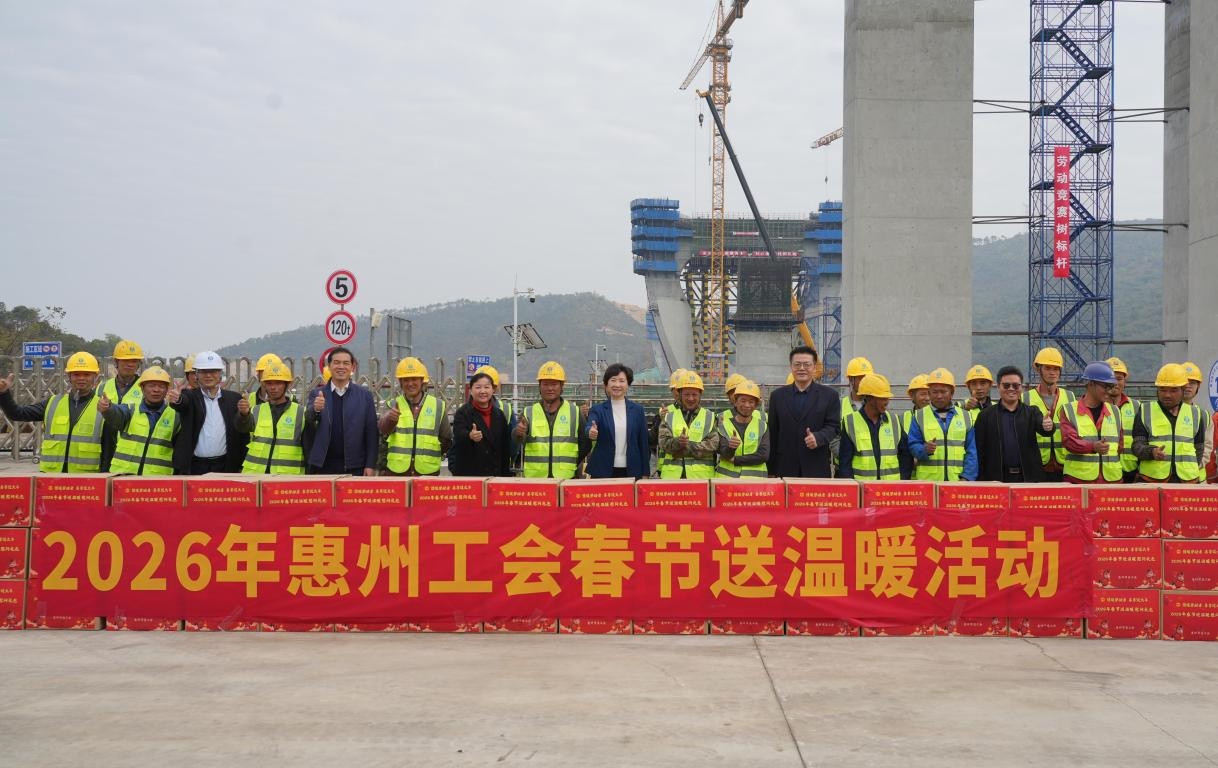 張偉榮一行先后走進惠州市稔平半島開發建設指揮部、稔平半島環島高速項目考洲洋大橋施工現場、“惠民速辦”一體化訴求受理平臺、市區江北環衛愛心驛站,與廣大建設者、勞動者親切交談,細致詢問他們的工作生活情況,高度贊揚他們展現出的創新精神、敬業奉獻的職業素養,衷心感謝他們為惠州高質量發展作出的重要貢獻。慰問組為職工們送上慰問品和新春祝福,傳遞黨委政府和工會組織的深切關愛,激勵他們以更加飽滿的熱情和昂揚的斗志投入到新一年的工作中。