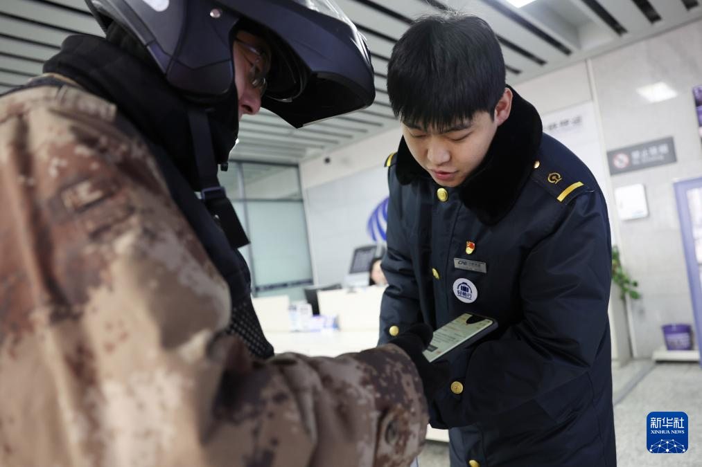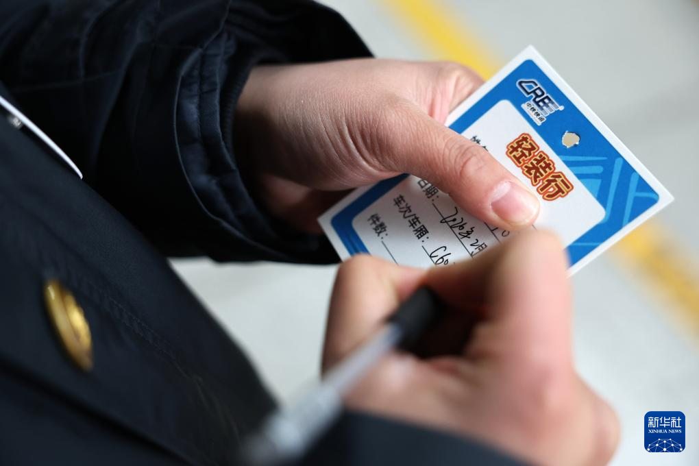 2月8日,中鐵快運(yùn)蘭州西站營業(yè)部的工作人員雒鵬在填寫“輕裝行”服務(wù)卡的信息。新華社記者 陳斌 攝
