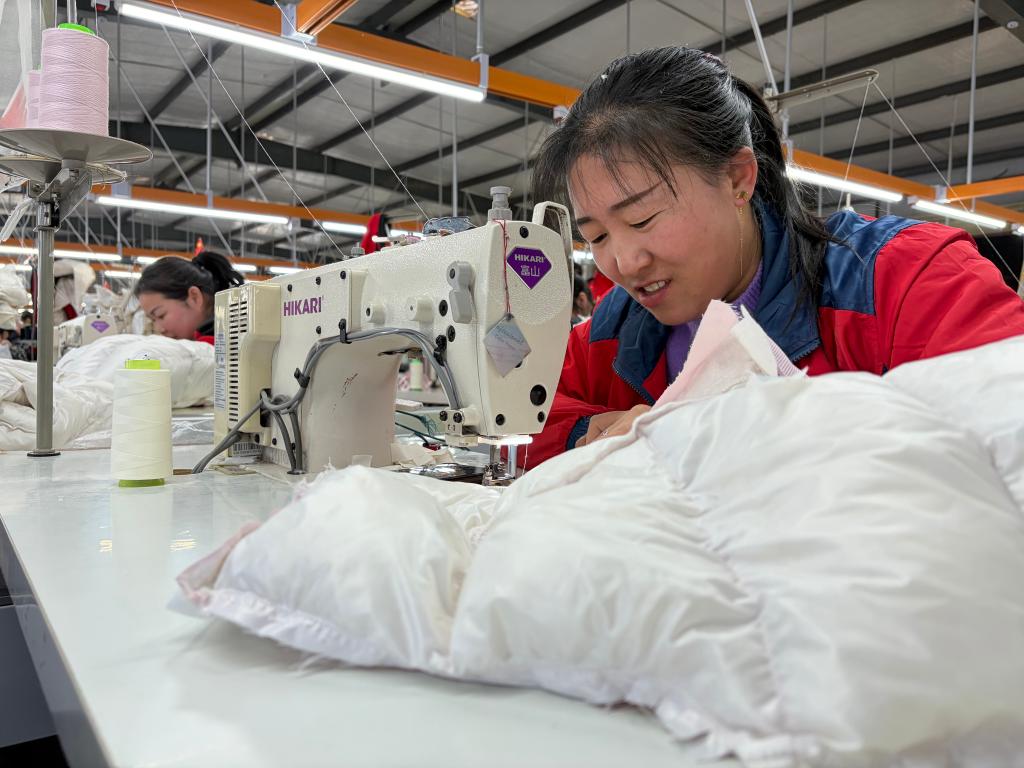 “我們去年購買了紡織機械,提高了工作效率,尤其像絎線這樣的活,不到幾分鐘就完成了。再有幾天,我們就能全部完成訂單?!北R亞明說,春節后,他們將進行擴產,繼續招工。